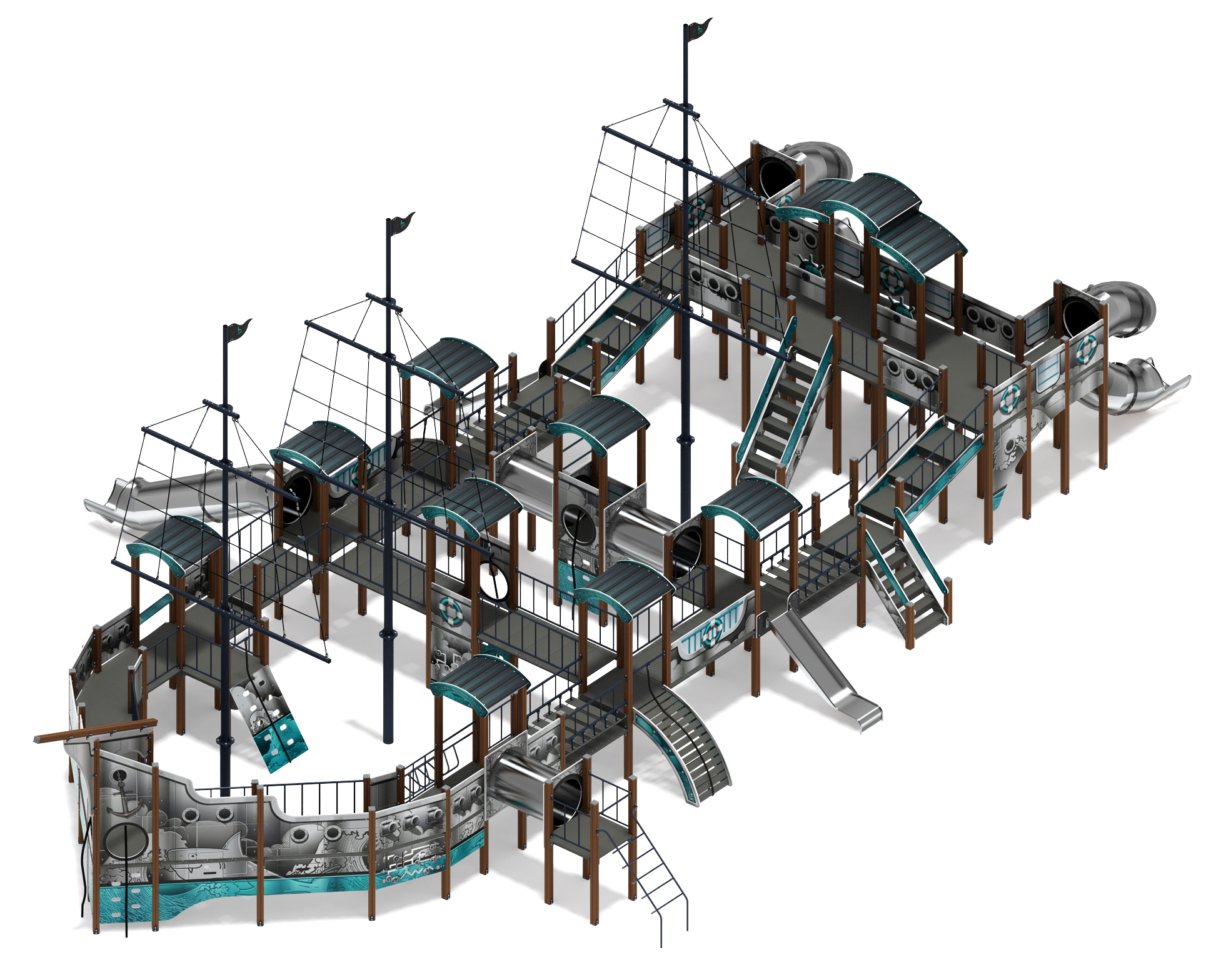Баркентина (Лагуна) - ДИК 2.03.3.06-22 - Игровой комплекс (нержавейка скат) H=1200, Н=1500, Н=2000