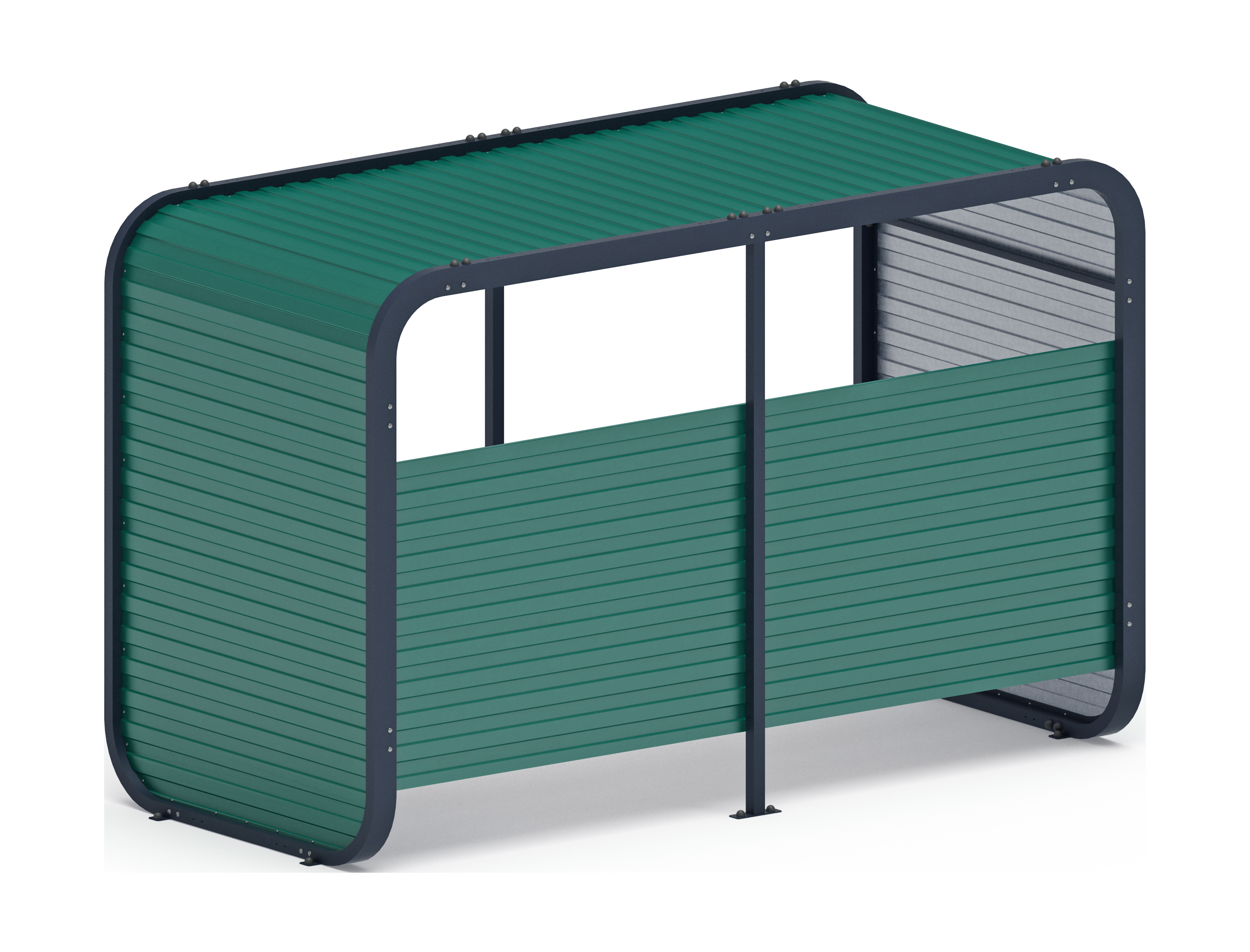 Навес контейнерной площадки для мусора (зеленый) (2 секции) (под анкера) МФ 55.01.02-01