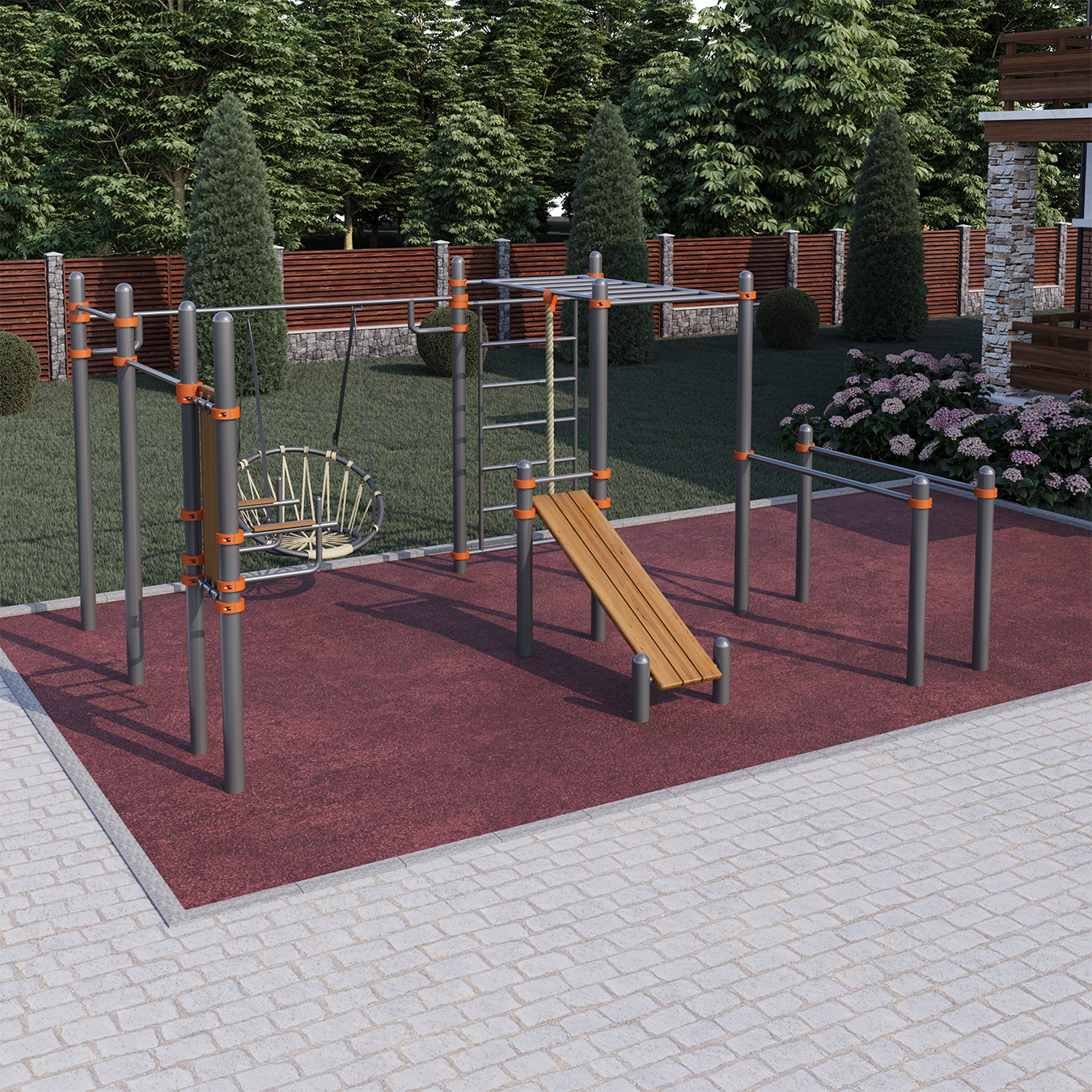 Спортивный комплекс предназначен для эксплуатации на площадке частного дома, дачи, закрытой территории (дома отдыха, мини гостиницы, коттеджного поселка).
