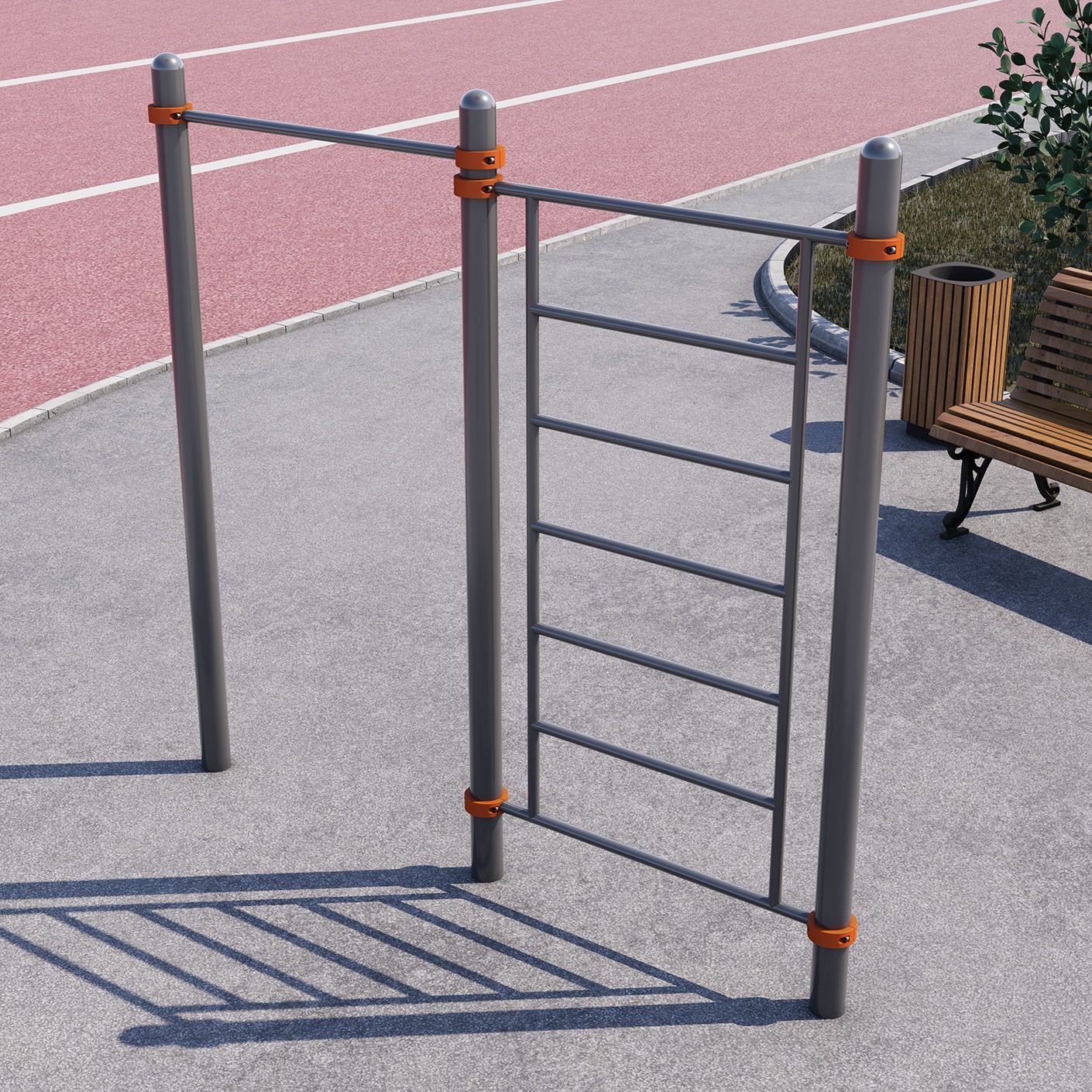 - Регулируемая по высоте перекладина турник, шведская стенка.
