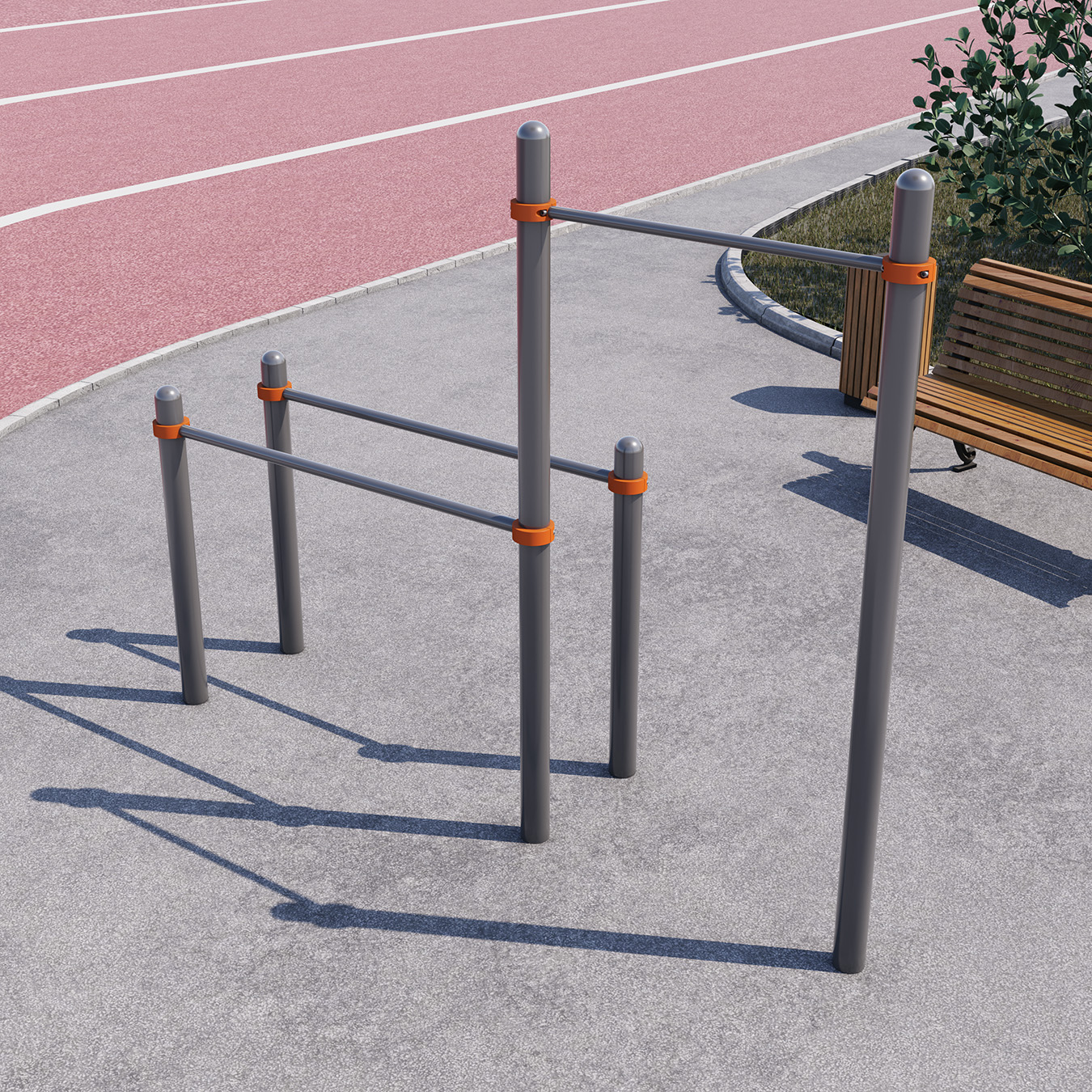 - Регулируемая по высоте перекладина турник, брусья.