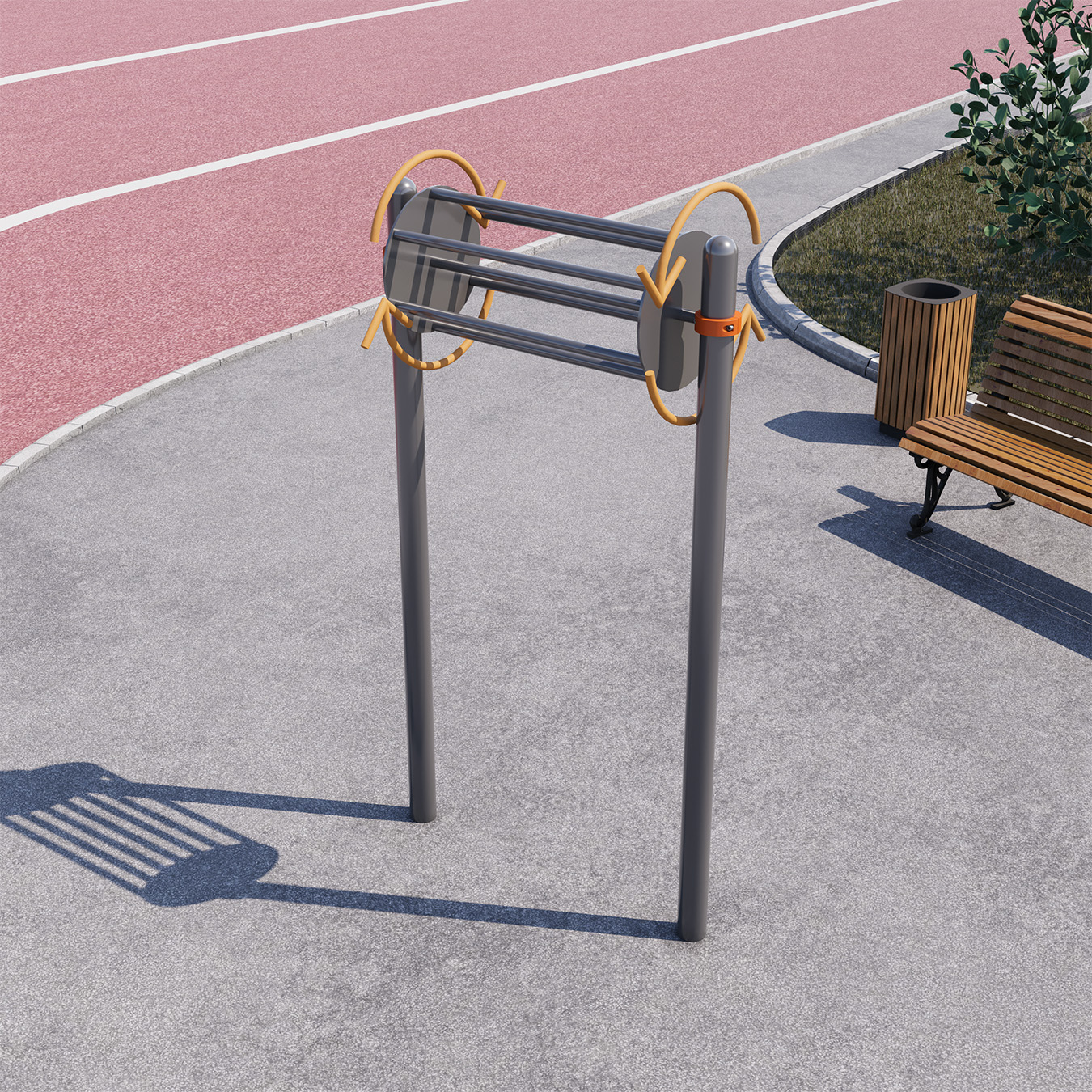- Уличный спортивный тренажер развивает и укрепляет мышцы рук, плечевого пояса, спины и груди. Упражнения на турнике оказывают прекрасные воздействия на позвоночник и организм в целом.