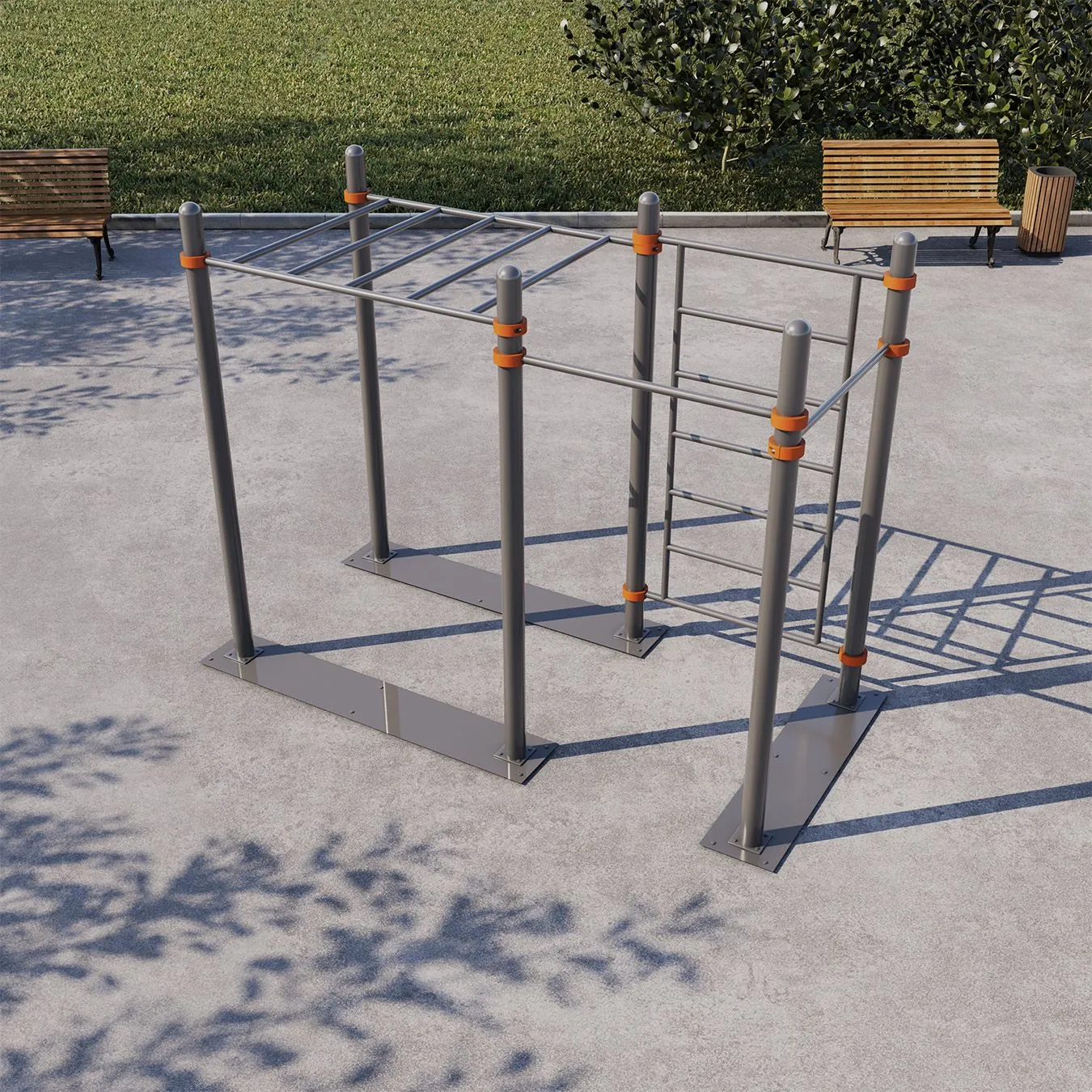 - Благодаря возможности выбора цвета, спортивный комплекс отлично вписывается в различные дизайн проекты загородных домов, спортивных залов, школ, дворовых территорий, площадок Воркаут/workout.