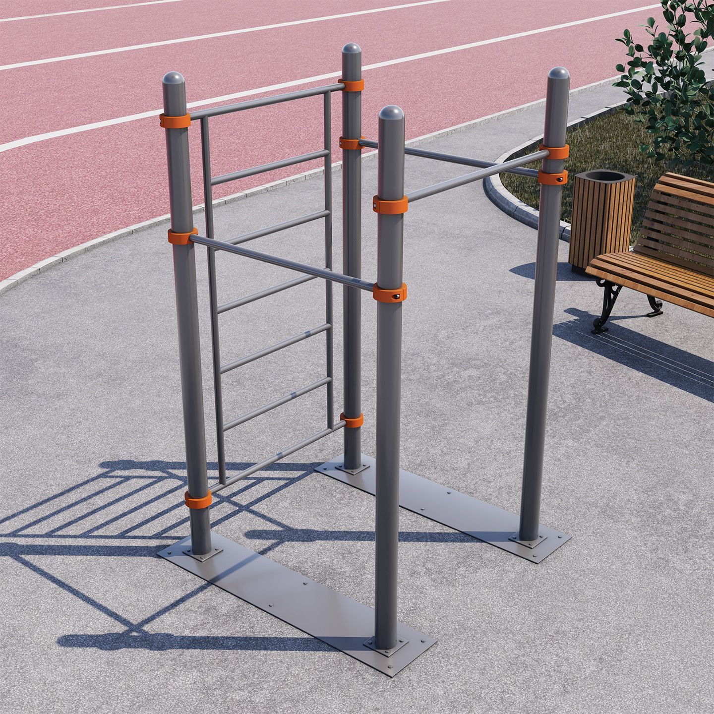 - Благодаря возможности выбора цвета, спортивный комплекс отлично вписывается в различные дизайн проекты загородных домов, спортивных залов, школ, дворовых территорий, площадок Воркаут/workout.